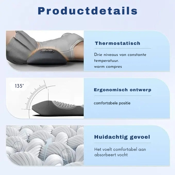 Lange uren achter het scherm, weinig beweging en een constante druk op je onderrug. HerstelZeker™ helpt spanning los te laten en ondersteunt je rug op natuurlijke wijze. Met warmte en trillingen voel je verlichting in minuten, zodat je weer energie hebt voor wat écht telt.
