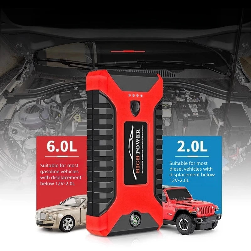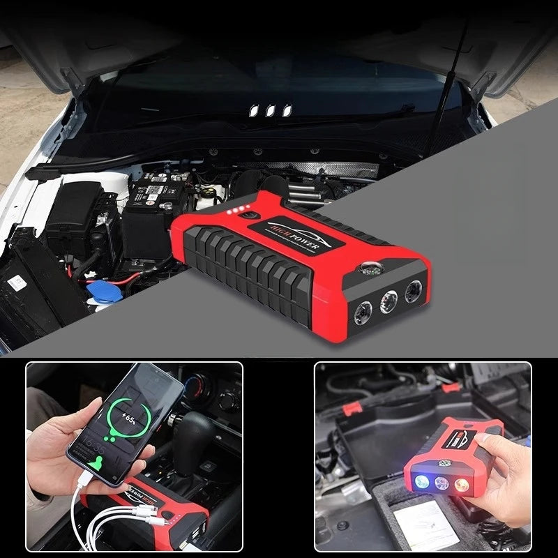 Gebruik hem als jump starter, powerbank of zaklamp. Eén apparaat, eindeloos nut.